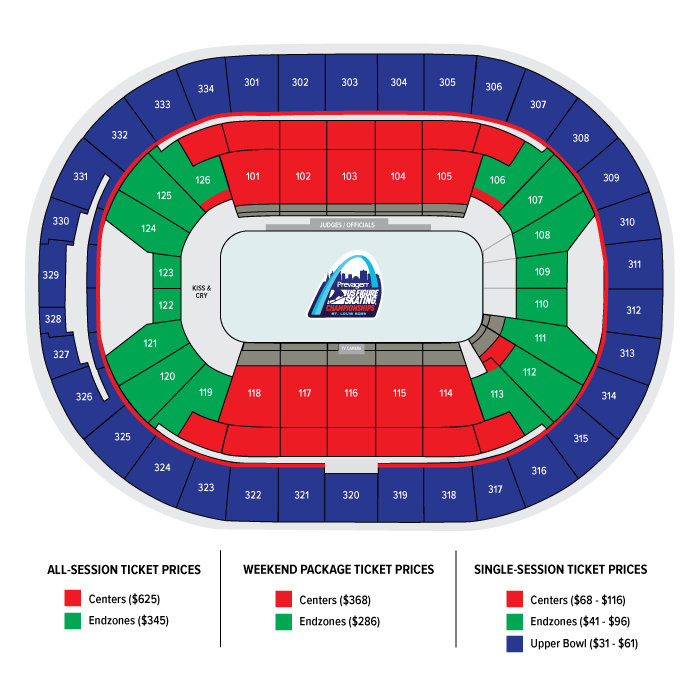 All-session tickets include admission to all eight championship-level competitions Wednesday, Jan. 7 through Saturday, Jan. 10, the Olympic team naming celebration on Sunday, Jan. 11, and all championship-level practices, which begin Tuesday, Jan. 6. All-session tickets also include junior and novice practices and competition at the Centene Community Ice Center Jan. 4-6.
